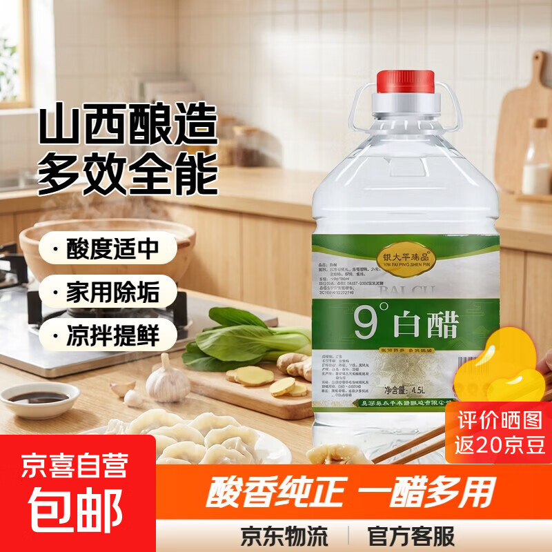 山西酿造白醋食用洗脸泡脚除垢家用白醋批发 9度4.5L(9斤)