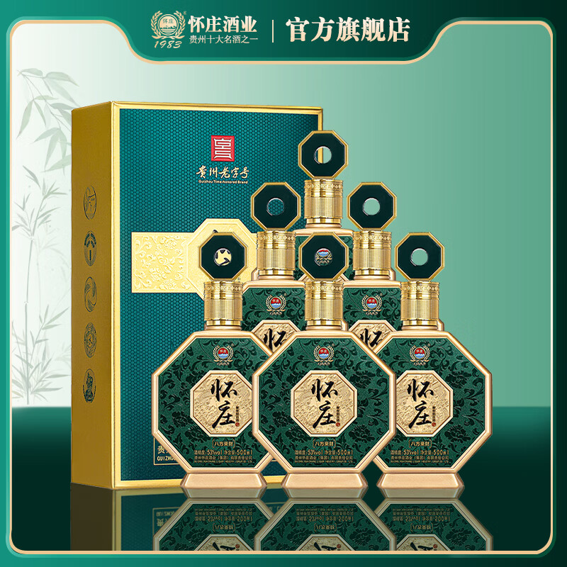 怀庄1983八方来财贵州白酒53度酱香型白酒整箱纯粮食高粱大曲坤沙窖藏白酒 53度 500mL 6瓶 礼盒装+3个手提袋