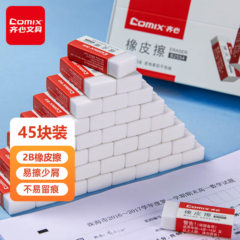 齐心(Comix)2B橡皮擦 45块装美术绘画考试橡皮 办公/学生文具B2554