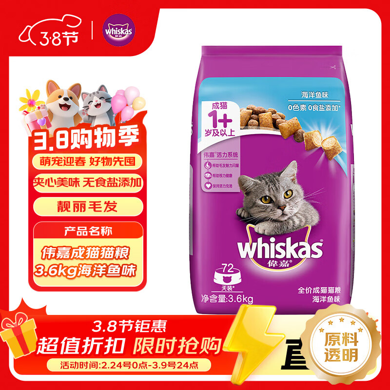 伟嘉成猫猫粮3.6kg海洋鱼味布偶英短猫咪夹心粮全价粮【原料透明】