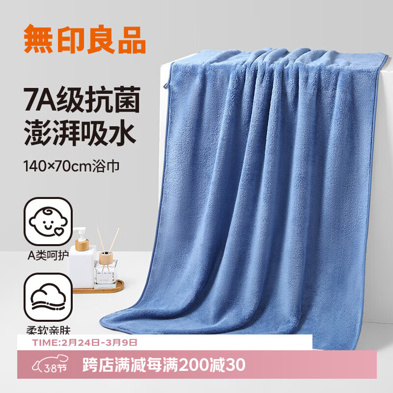 无印良品浴巾7A级抗菌亲肤柔软吸水速干A类不易掉毛男士女生洗澡大浴巾