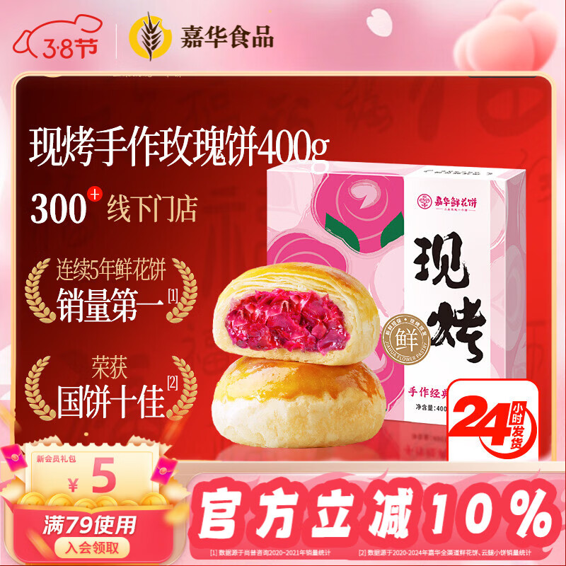 嘉华鲜花饼手作现烤玫瑰饼400g休闲零食早餐糕点特产【源头直发包邮】