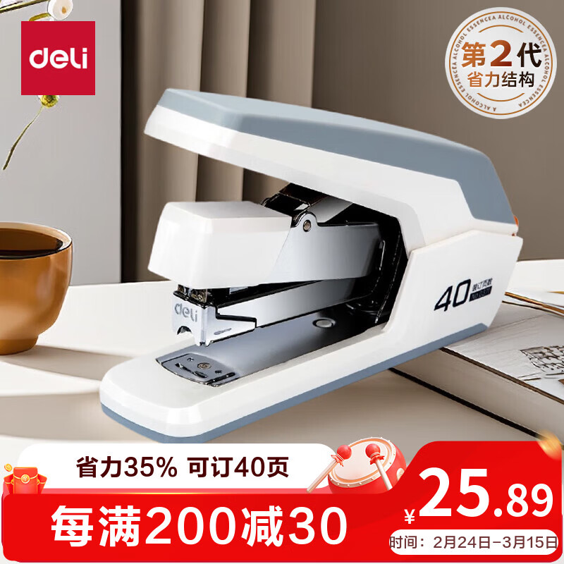 得力(deli)省力订书机订书器中号办公用品学生专用文具办公室桌面必备适配24/6订书钉 白色0371