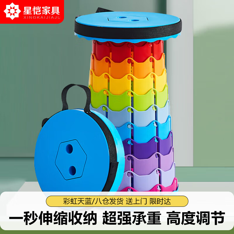 星恺 折叠凳子伸缩凳户外便携式小凳子塑料凳圆凳板凳 HK5077彩虹天蓝