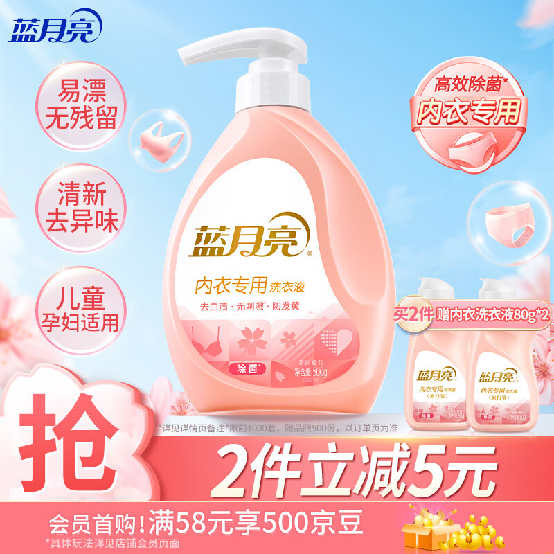 蓝月亮内衣内裤洗衣液手洗洗衣液清洗液樱花香500g 去血渍除菌>99%