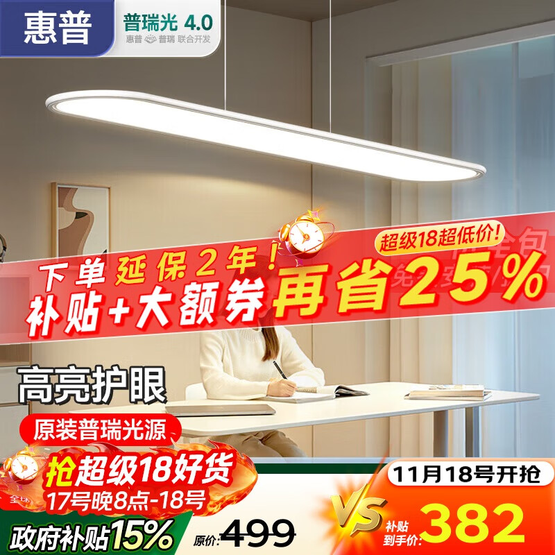 惠普普瑞护眼大路灯平替LED学习桌吧台灯具极简长条餐吊灯包安装