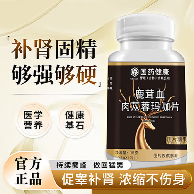 男性滋补壮身肾阳鹿茸血肉苁蓉玛咖鹿鞭片秘制浓缩中老年非速效 国药健康鹿血肉苁蓉玛咖片1瓶
