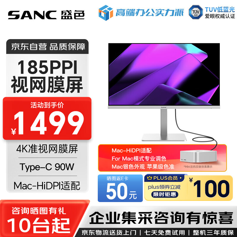 SANC盛色 27英寸IPS显示器 硬件低蓝光 144Hz 广色域不闪屏可壁挂 电脑办公显示屏OF27