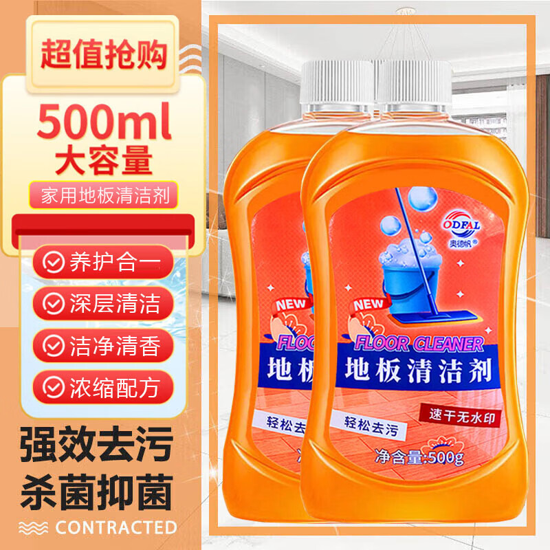 多效家用瓷砖木地板清洁剂留香抑菌清洗剂拖地清洁液强力去污神器 【10】家用地板清洁剂 500ml*2瓶 养护清洁
