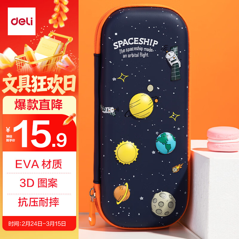 得力(deli)小学生笔袋 EVA大容量文具盒 星空系列抗压耐摔铅笔盒 轻盈防水笔袋 橙色开学必备