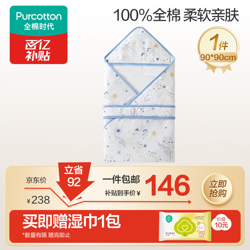 全棉时代婴儿抱被纯棉新生儿包被襁褓微厚包单四季通用星光熠熠90cm×90cm