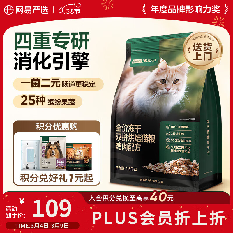 网易严选全价冻干双拼烘焙鸡肉猫粮 成幼猫主粮无谷鲜肉美毛护肠胃 1.5kg