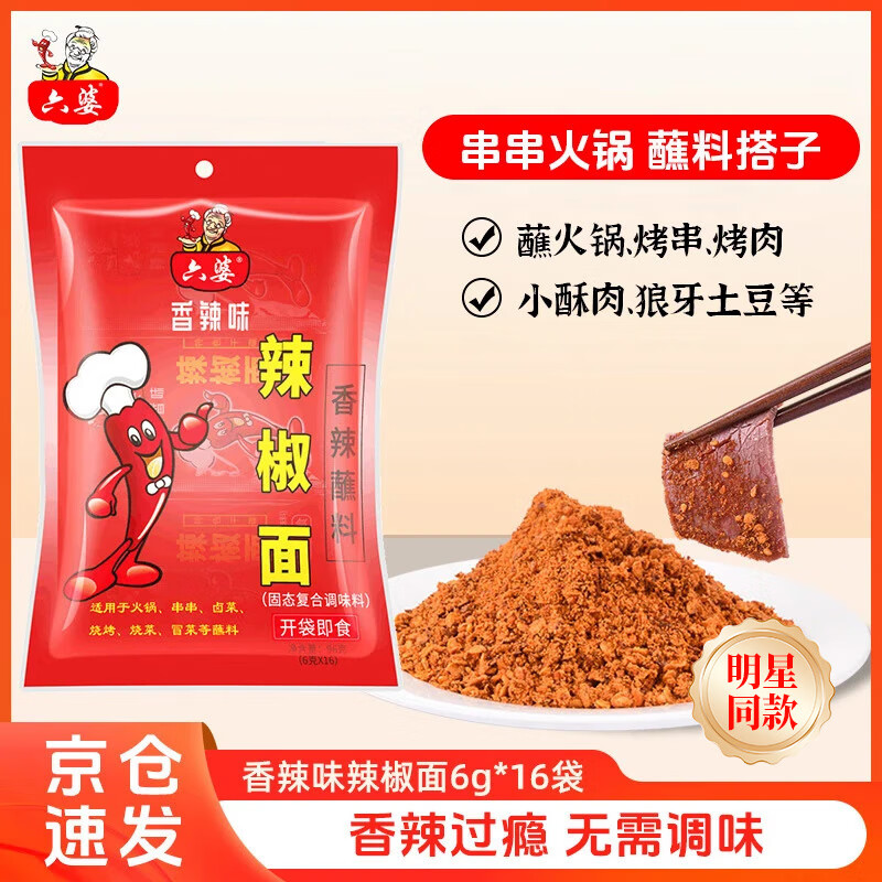 六婆辣椒面粉火锅底料蘸料下饭神器6g*16袋调味品凉拌麻辣烫调料