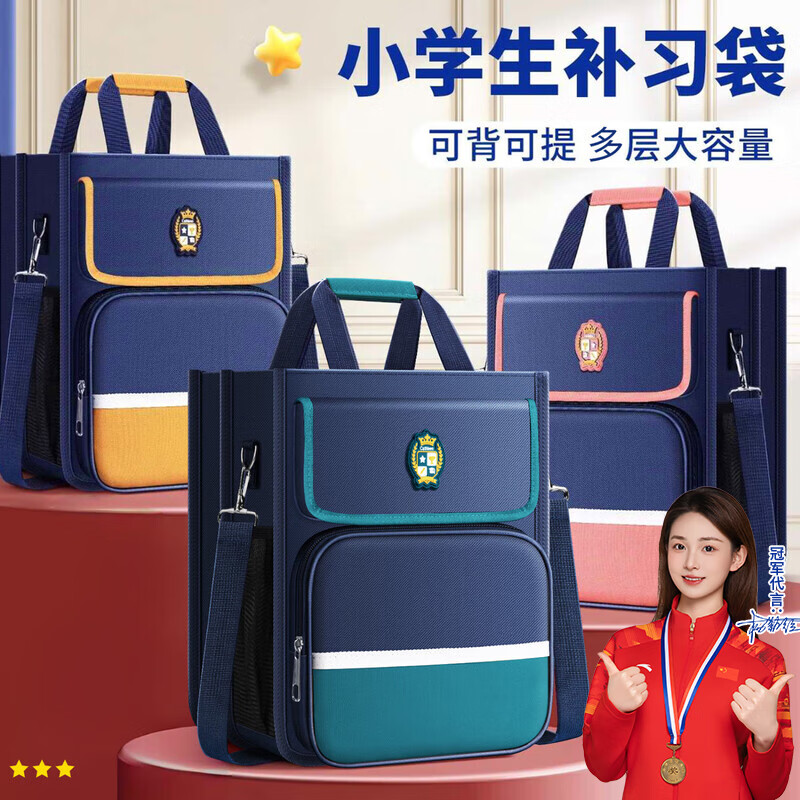 汕誉补习袋多层大容量小学生男女孩可双肩手提书包补习包初高中儿童补课手提袋美术袋收纳袋开学必备