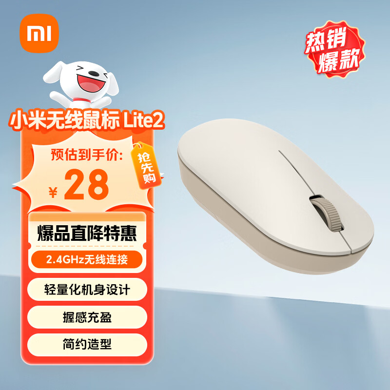 小米(MI)无线鼠标 Lite2 奶茶白 2.4GHz无线传输 办公鼠标 黑色 轻量化设计便携办公mac笔记本 握感舒适