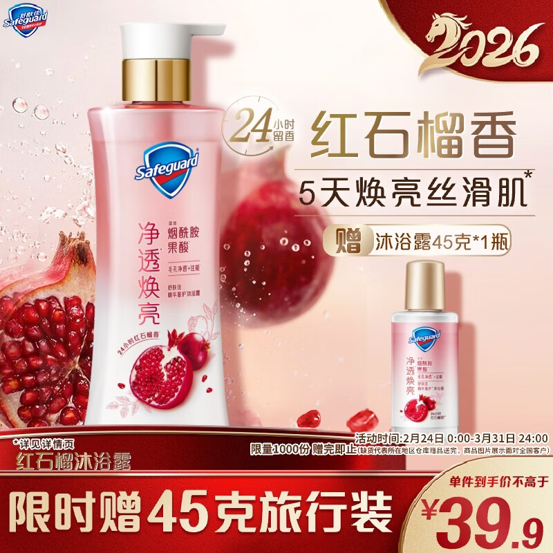 舒肤佳新升级净透沐浴露红石榴380g含烟酰胺焕亮持久留香 男女士通用