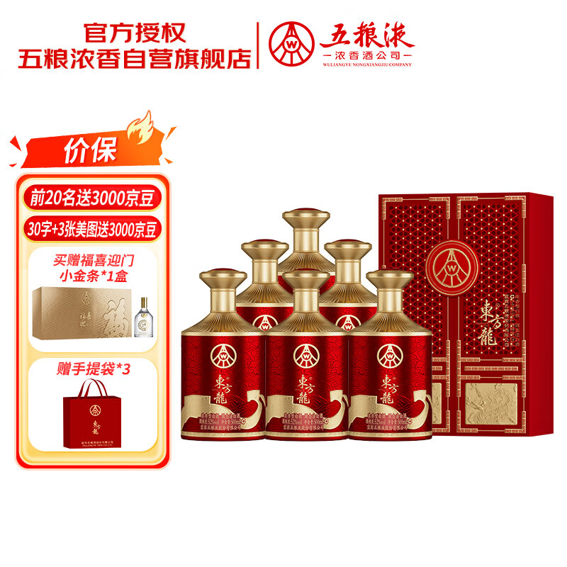 五粮液股份 东方龙 龙腾万里 浓香型白酒 52度 500ml*6瓶 整箱 送礼宴饮