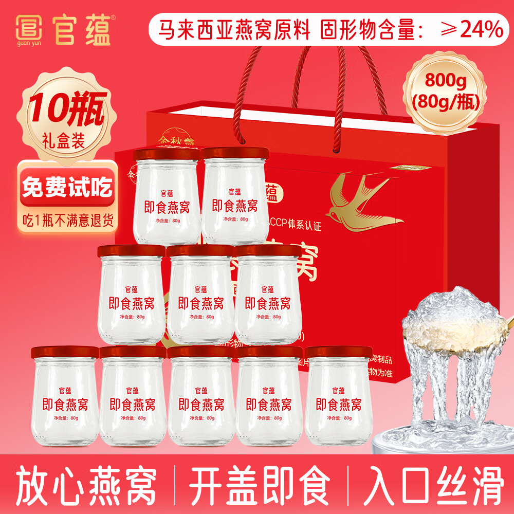 官蕴燕窝 即食燕窝礼盒80g*10瓶孕妇补品女营养品送父母长辈妈妈礼物