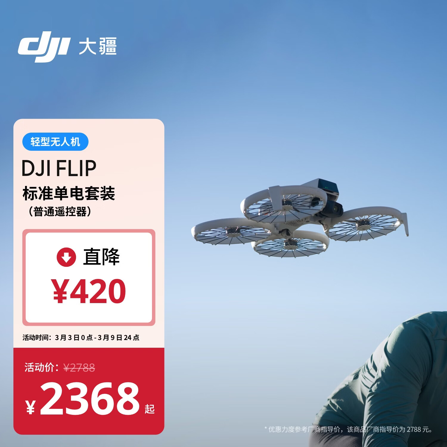 大疆 DJI Flip 全能 Vlog 航拍机 户外露营旅游运动便携高清防抖 轻型无人机 迷你语音遥控飞机