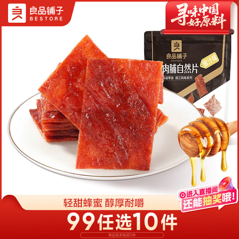 良品铺子 猪肉脯自然片蜜汁味100g 靖江风味猪肉干肉脯肉类零食休闲网红