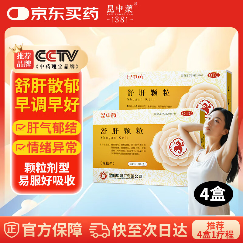 昆中药 舒肝颗粒 3g*16袋*4盒 舒肝理气 散郁调经 用于肝气不舒的胸腹胀闷 月经不调 肝郁气滞所致的黄褐斑