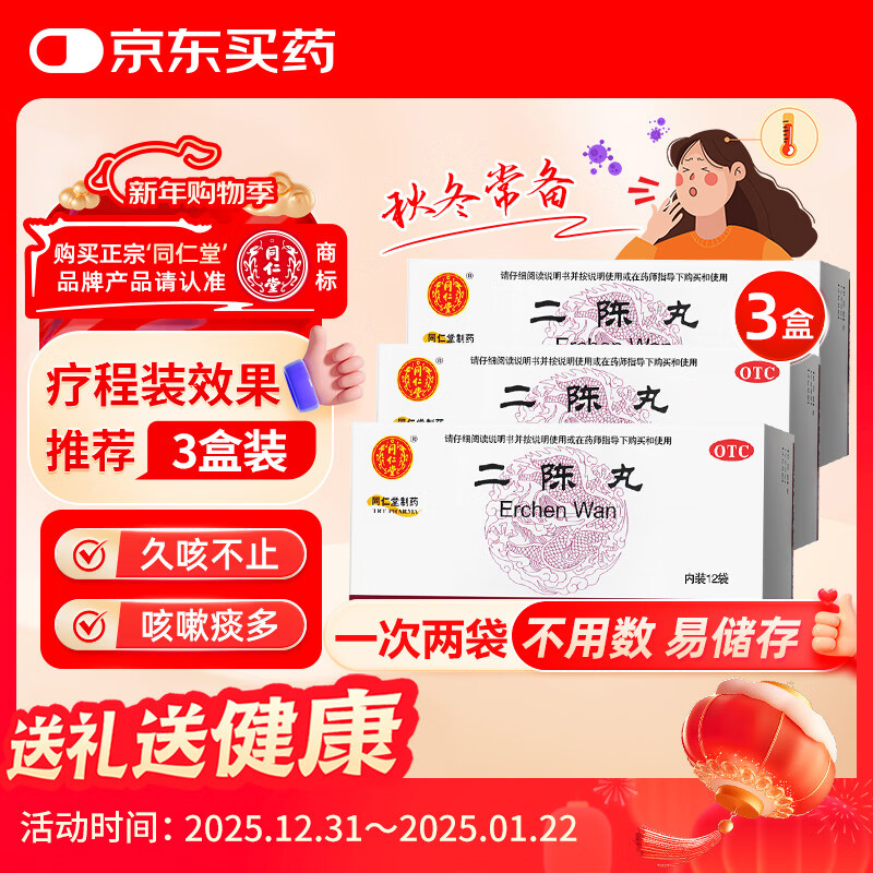 【3盒装】北京同仁堂 二陈丸 6g*12袋 燥湿化痰 理气和胃用于痰湿停滞导致的咳嗽痰多胸脘胀闷恶心呕吐