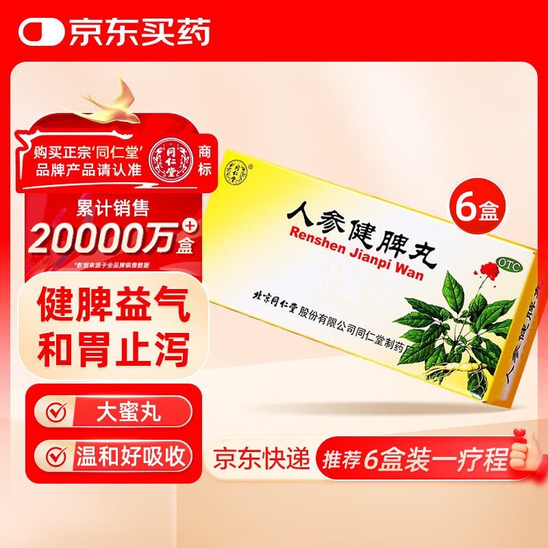北京同仁堂 人参健脾丸 6g*10丸*6盒 健脾丸大蜜丸健脾益气和胃止泻脾胃虚弱饮食不化恶心呕吐