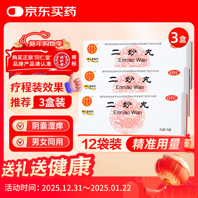 【3盒装】同仁堂 二妙丸 6g*12袋 燥湿清热 用于湿热下注 白带 阴囊湿痒
