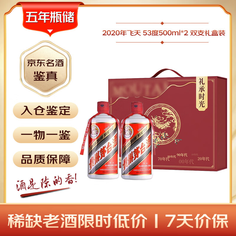 【礼承时光】2020年 飞天 酱香型白酒 53度 500ml*2 陈年老酒
