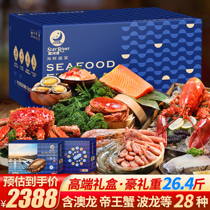 星河湾【现货】星河湾海鲜礼盒大礼包28种26.4斤含帝王蟹/龙虾年货礼品生鲜水产套餐源头直发
