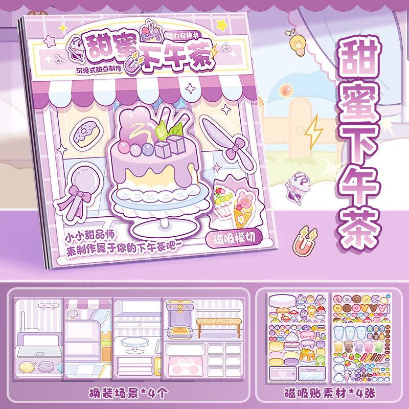 咔巴熊 mini磁吸安静书 甜品系列免裁剪换装场景贴纸手工益智玩具 甜蜜下午茶