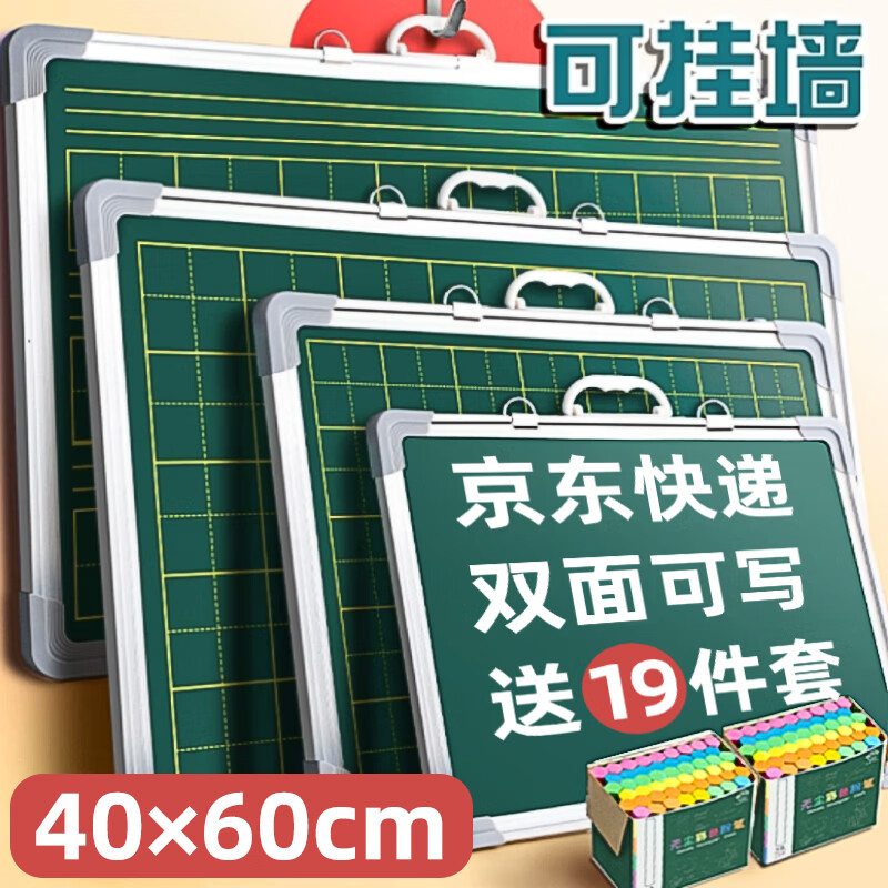 金值小黑板双面绿板 40*60儿童家用教学练粉笔字可擦磁性挂墙式教师练字师范生办公用墙贴练习板田字格