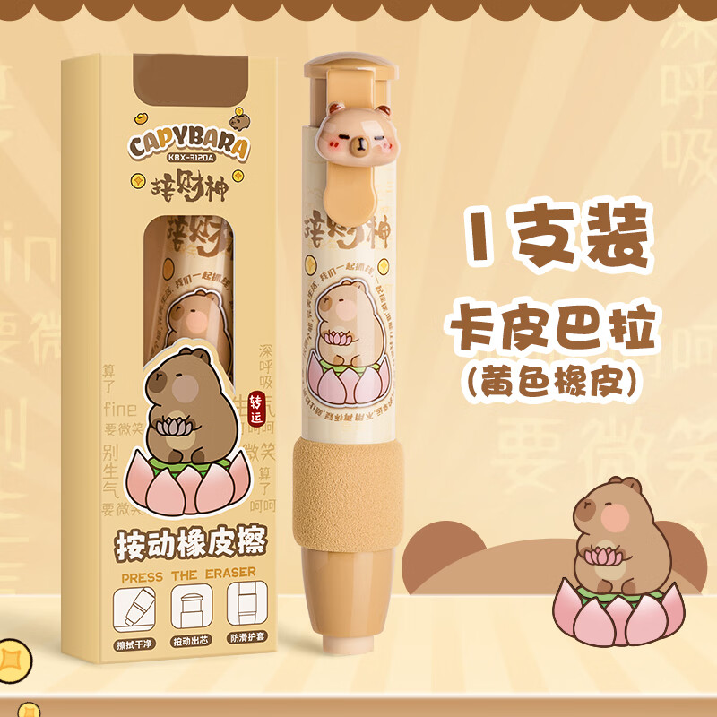 反转卡通按动橡皮擦小学生用笔型软握按压款儿童铅笔象皮易擦幼儿园小学生用橡皮 1支【卡皮巴拉】