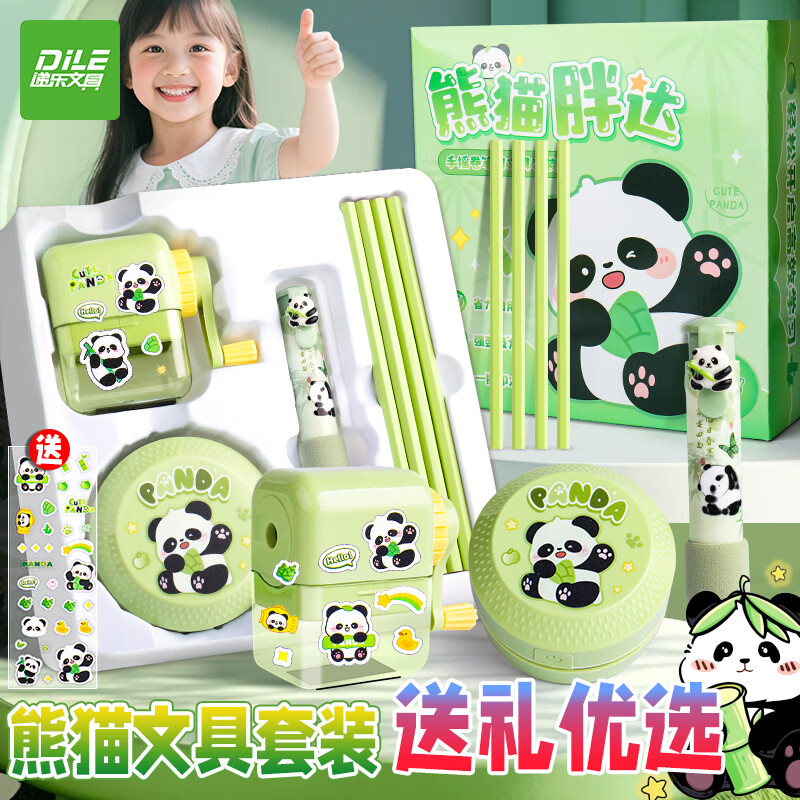 递乐 文具套装礼盒小学生开学大礼包卷笔刀铅笔橡皮卡通文具礼物儿童学习用品 KBX-3161F绿色熊猫