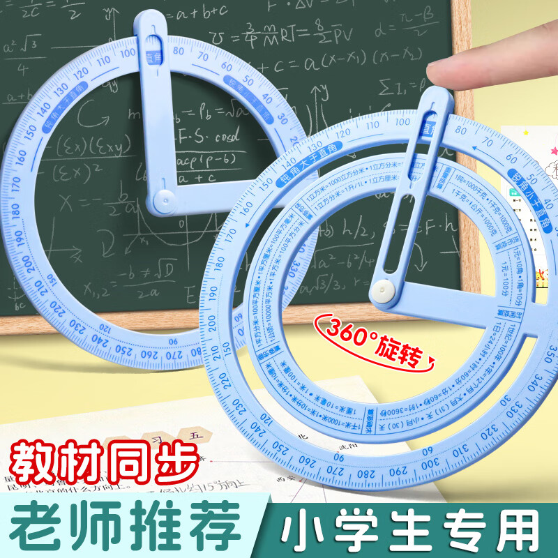 佳茉活动角教具尺子小学三四年级360度量角器数学画角神器几何儿童学习专用品多功能角度尺演示器教学