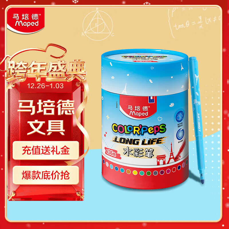马培德(Maped)巨能画儿童水彩笔 幼儿学生绘画彩色笔 初学美术彩绘涂鸦画笔 节日送礼 845071CH【36色/筒装】