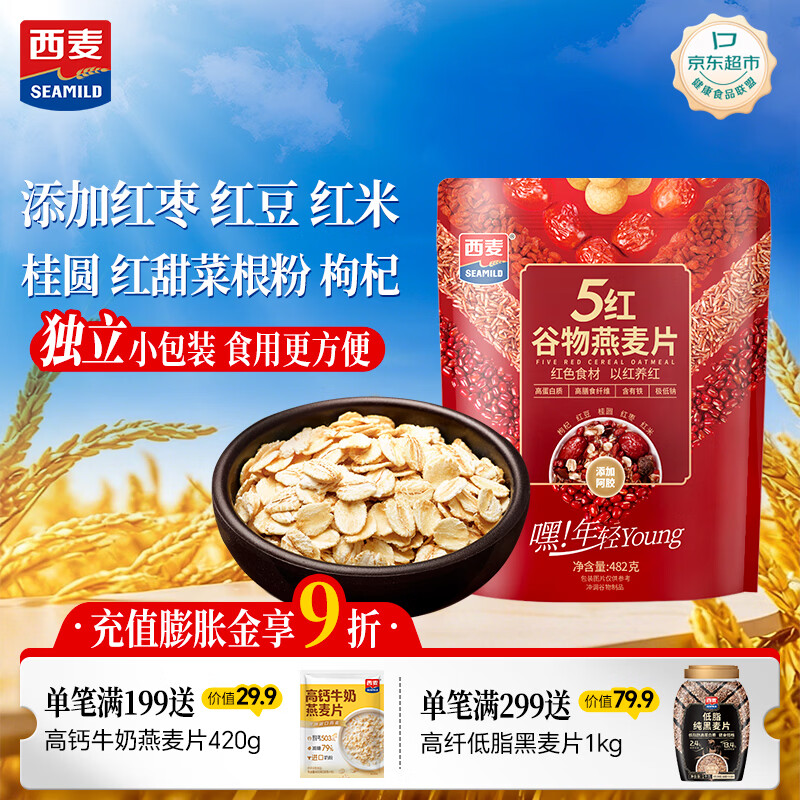 西麦5红混合谷物燕麦片482g 营养早餐谷物代餐无额外添加蔗糖