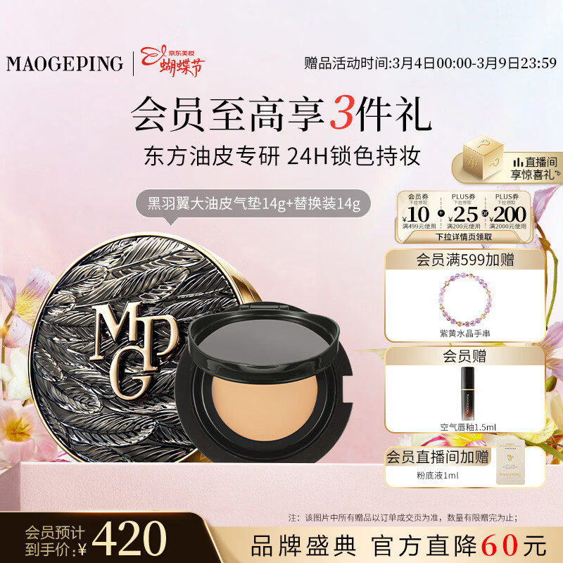 毛戈平【陈丽君同款】黑羽翼气垫702套装自然14g38女神节礼物送女友