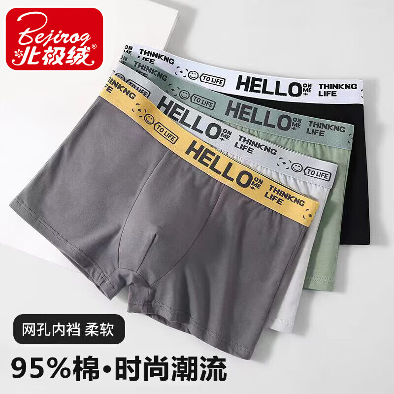 北极绒 纯棉男士内裤7A抗菌平角裤宽松高弹四角短裤舒适男青年透气内裤 【2条装】颜色随机 2XL (120-140斤)