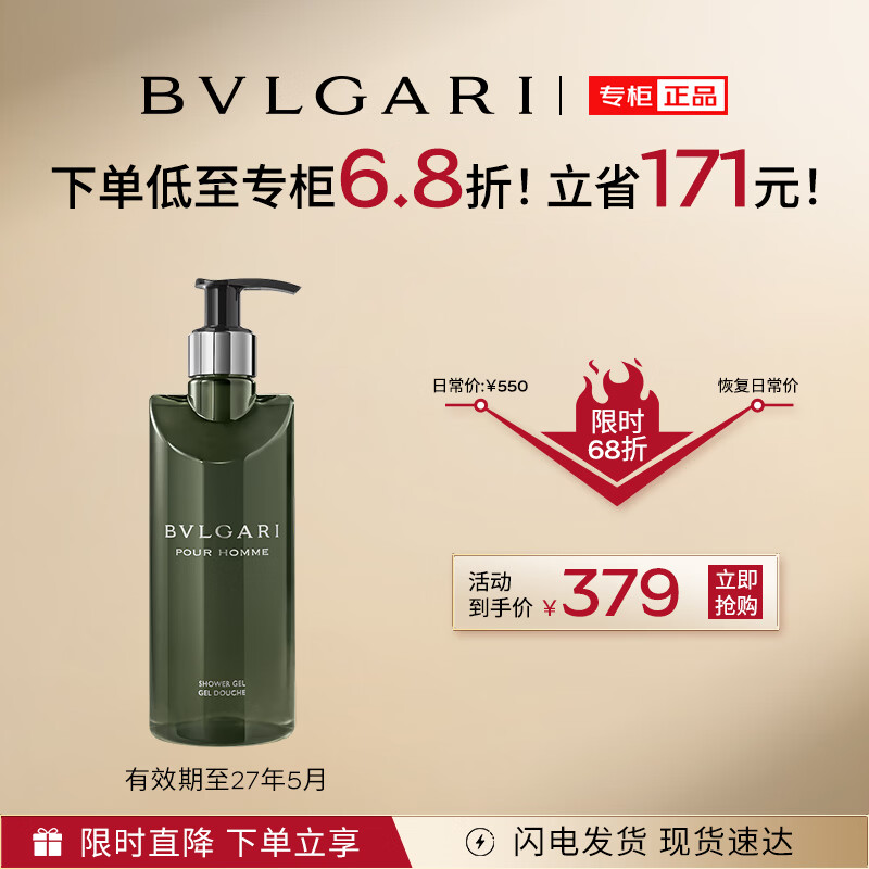 宝格丽(BVLGARI)大吉岭茶男士沐浴啫喱香氛沐浴露300ml(无礼盒礼袋)效期27年5月