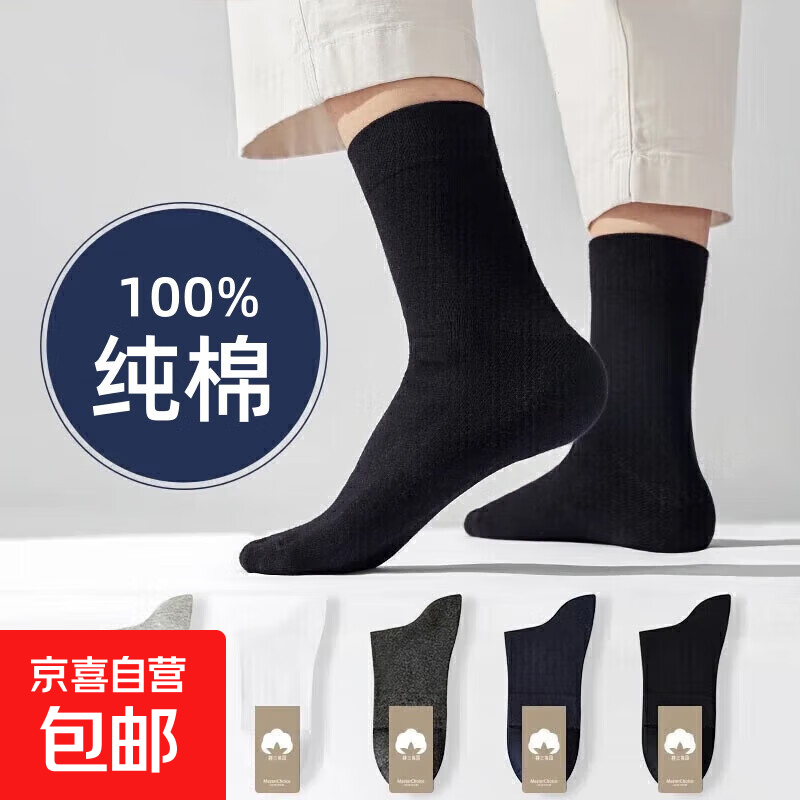 【纯棉不臭脚】吸汗防臭抗菌男士纯色简约中筒袜棉袜袜子男 黑色+白色+灰色 3双