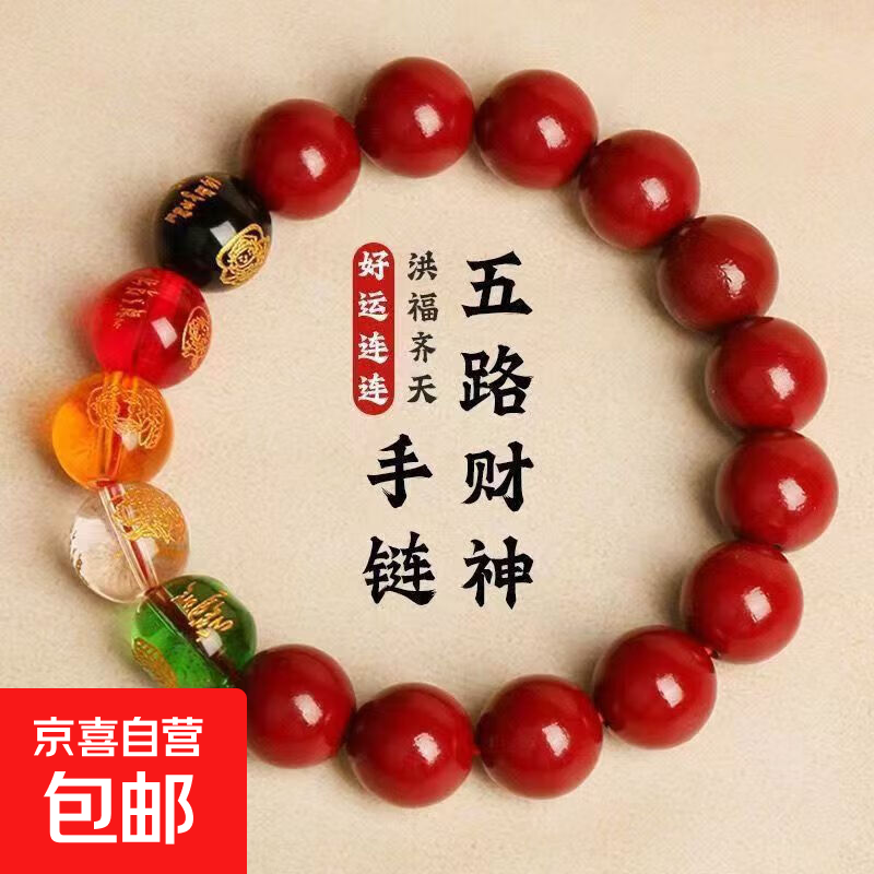 世希朱砂五路财神转运手链手串文玩帝王紫金砂男女款本命年护身符朱砂手串男女款五路财神手链礼物 五路财神朱砂8mm 私域专享