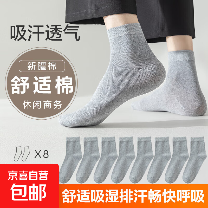 【新疆棉】袜子男舒适耐磨棉袜透气吸汗中筒袜商务男袜 【浅灰色】 8双