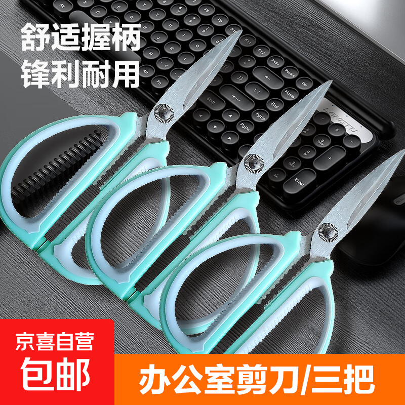 剪刀家用剪子厨房办公学生剪纸大号裁缝剪不锈钢强力鸡骨剪绿色 中号3把