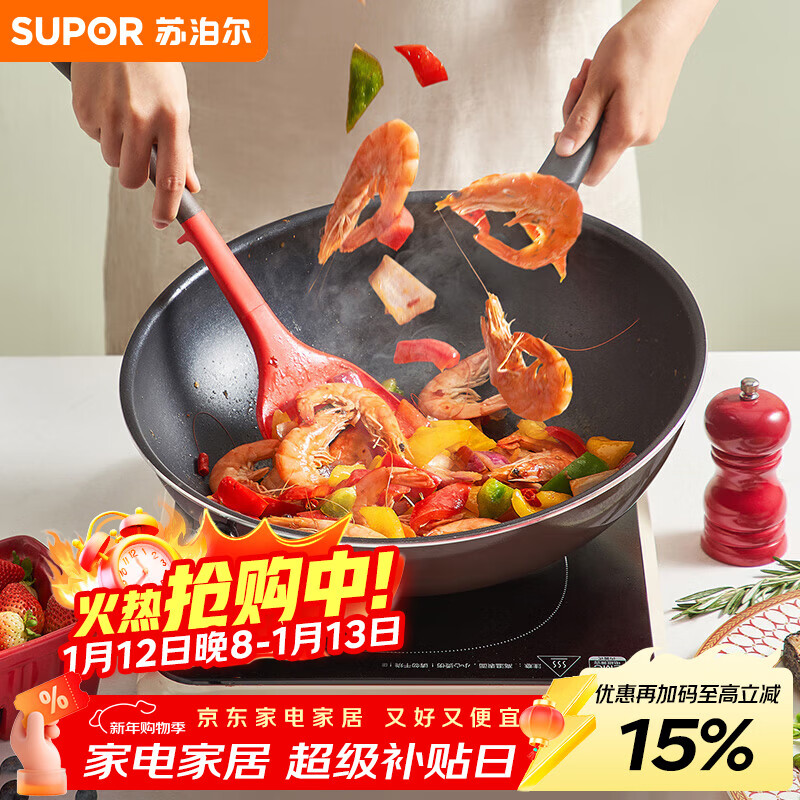 苏泊尔(SUPOR)炒锅 不粘锅平底炒菜锅煎锅34cm电磁炉燃气通用易洁少油烟