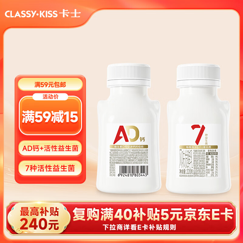 卡士007AD钙益生菌酸奶220g*2瓶 原味 低温酸奶