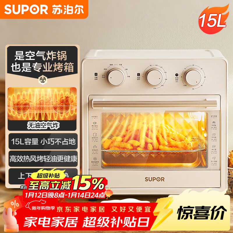 苏泊尔(SUPOR)家用多功能15L空气炸锅电烤箱 热风循环上下独立控温 轻油低脂带炉灯OJ15AK811