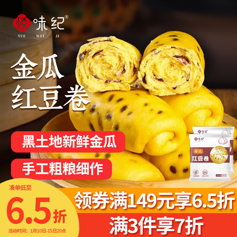 悦味纪 手工金瓜红豆卷500g*2包 20只 南瓜红豆卷花卷馒头 早餐速食