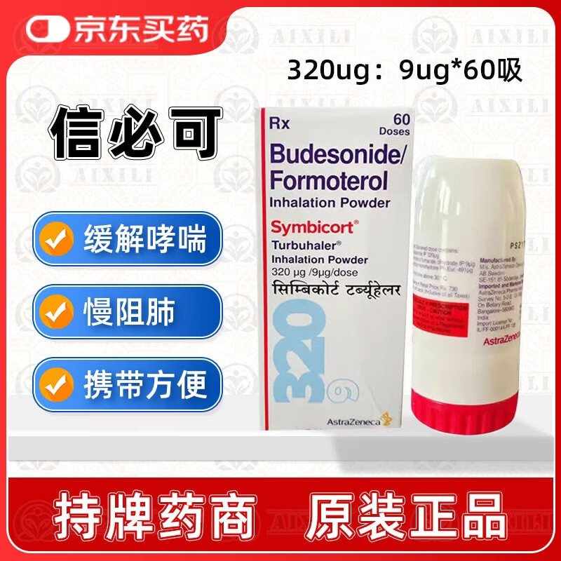 进口信必可都宝布地奈德福莫特罗吸入剂粉雾剂哮喘慢阻肺哮喘320ug:9ug60吸 信必可都宝320ug:9ug60吸一盒装