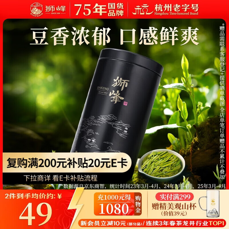 狮峰牌2025年新茶绿茶明前特级龙井43号茶叶50g春茶罐装送礼自己喝